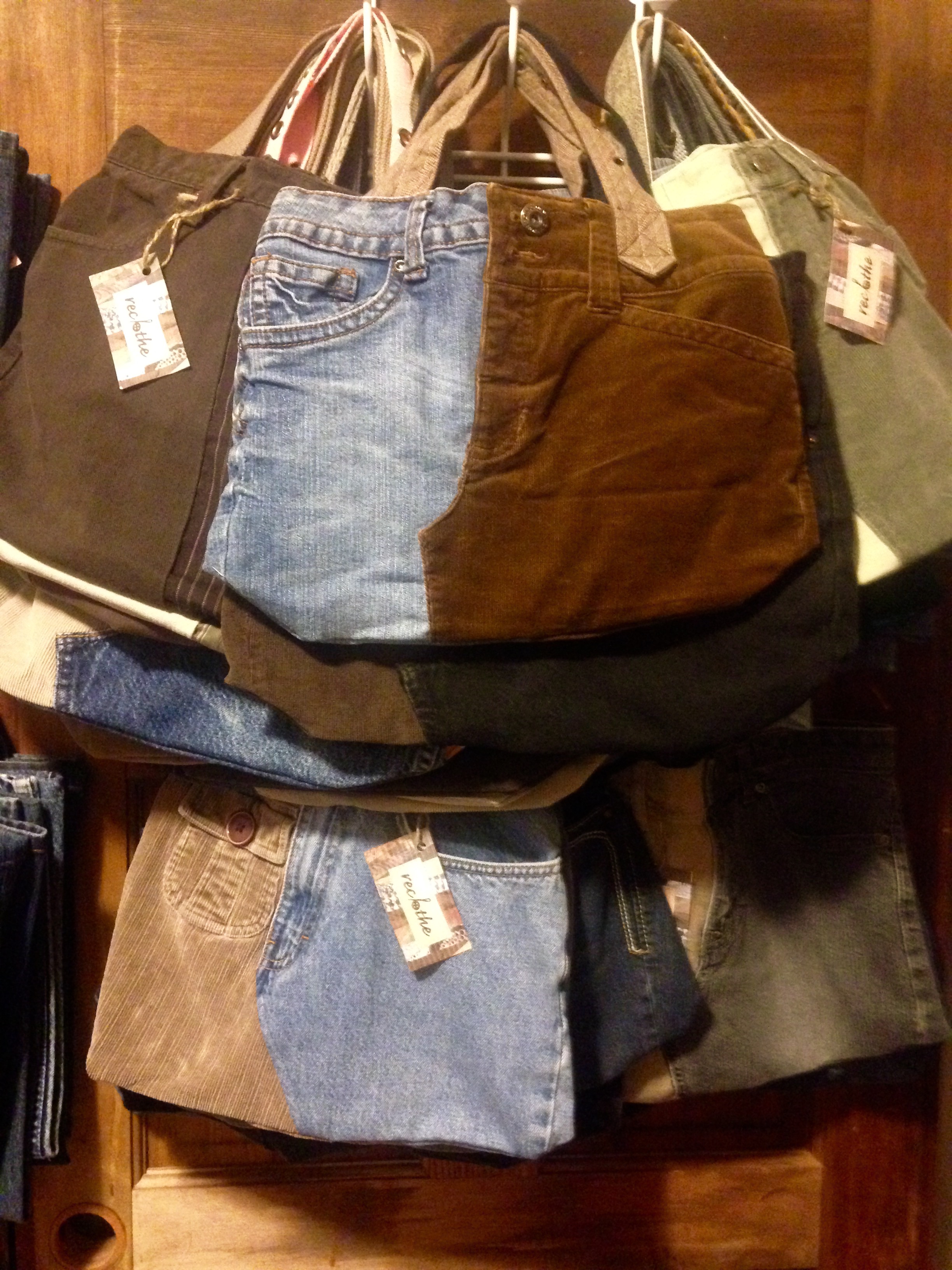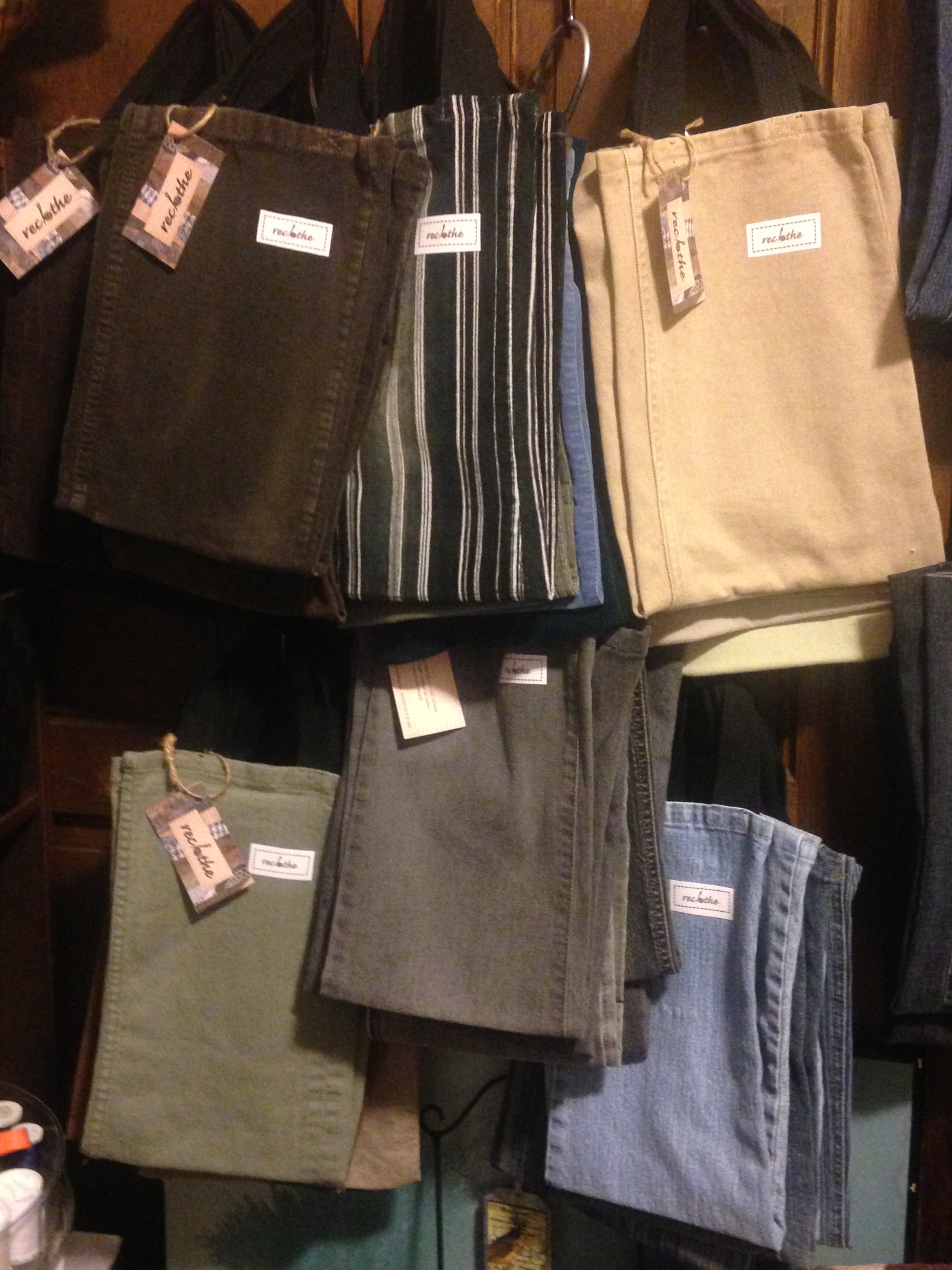 I didn’t want to waste the top of the pants, with all those handy pockets. So I came up with some great bags for your books, shopping or just to tote around your personal stuff…..